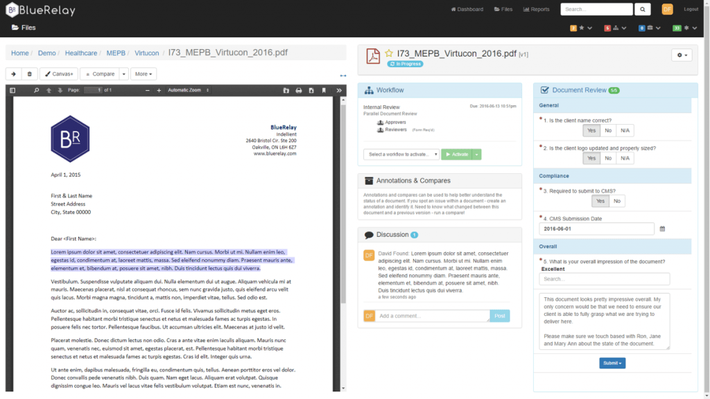 Blue Relay facilitates collaboration regardless of the distance or separation of the team. It enables speedy allocation of tasks and immediate response as content and documents are built – and notifications are customizable. With such a feature, deadlines get met and accurate content gets timely approvals.