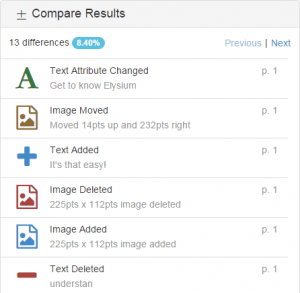 When it comes to the compare results, Elysium Compare focuses on document content and flow. This includes: